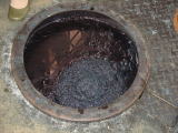 鍋の中で煮た繭(まゆ)から