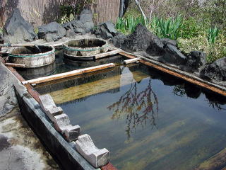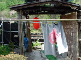 露天風呂の入口は掘っ建て小屋といった感じ。あくまでもお湯重視といったところか。