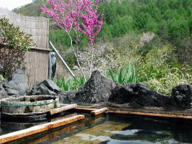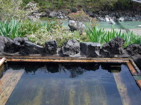 吾妻川を前にした、開放感たっぷりの風呂 |