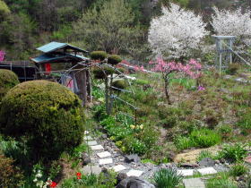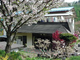 看板がなければ普通の民家である。ゴールデンウイーク中のこの日、玄関前の桜が満開です。