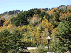 | 万座温泉上バス停付近からの眺め。万座プリンスも紅葉に包まれています |