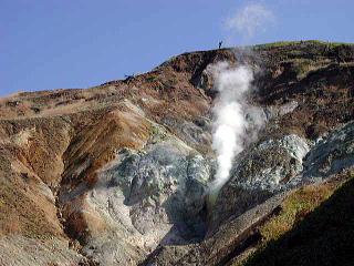 硫化水素ガスを含んだ薄黄色の蒸気が噴出している。活火山白根が息をしているのを感じ