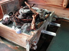 ご主人が採ってきたサルノコシカケに源泉を流し込み、そのエキスがしみ出したお湯を湯舟に注ぐというもの。ガンにも効力があると言われるラジウム北光泉とサルノコシカケのダブル効果で「ガン封じの湯」というわけです。事実、ガンが消えた、進行が止まったという報告もされているとのこと。