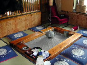湯上りにはフロント脇のいろり端で、お茶をごちそうになりながら女将さんからいろいろお話を伺いました。
