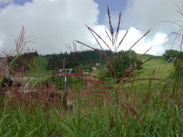 | ゲレンデが目の前。訪れた8月下旬、標高1800mの万座は早くも秋の気配。 |