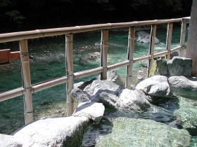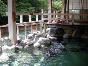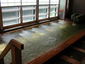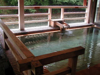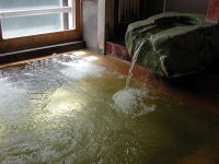 | 湯は体全体を包み込むようなまろやかな肌触りで、もちろんかけ流し。飲むと胃腸病に効くそうです。 |