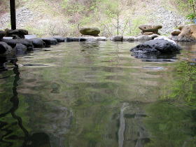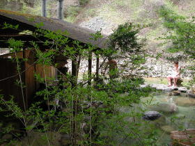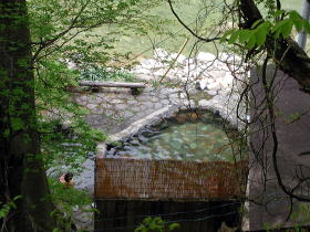 | 新緑と違和感なく溶け込んだ露天風呂 |