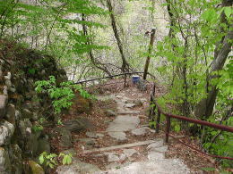 吊り橋を渡るとまた上り坂が待っていました。運動不足の体には結構きつい準備運動・・ |