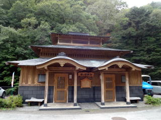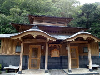| 今回は一族の旅行で「積善館」にチェックインする前に立ち寄りました。運良く入浴客は弟と私の二人だけ。実は何年か前に入浴しに訪れたことがあるのですが、そのときはすでに利用時間が過ぎていました。入浴時間は午前9時から午後3時なのでご注意下さい。いい湯でした。 |