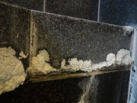 約50年前の雨水が地中で様々な成分を含んで湧出してくる温泉。湯口に付着している湯ノ花の結晶を見ると成分の濃さがわかります。 |