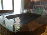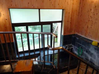 | 脱衣所と浴場は共同浴場でよくある一体型ですが、湯舟へは階段を降りていきます。面白い造りです。 |