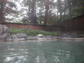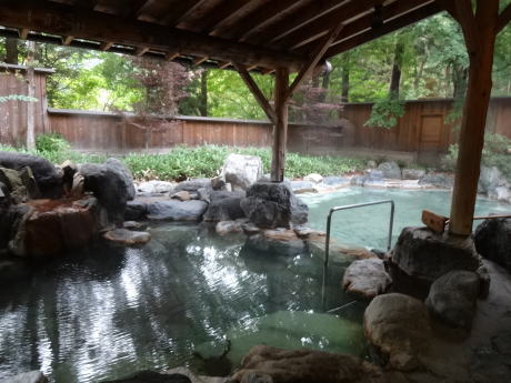 こちらが露天風呂。これだけの広さで内湯とともに源泉かけ流し。四万の湯は胃腸の湯と言われますが、肌触りも柔らかで心地いい。
