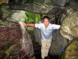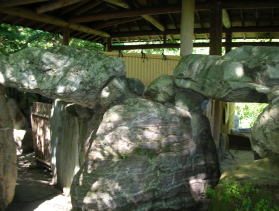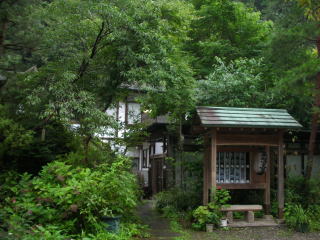 すごい!ここが露天風呂の入口。宿のご主人は相当な凝り性のようです。右が男性、左が女性浴場です。女性用は「白玉の湯」、女性用は「山峡の湯」と名付けられています。 |
