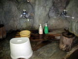 | 湯舟はふたつ。5〜6人は入れる加温の湯舟(循環ろ過式)と1人用(説明書きでは2人用)の源泉風呂があります。 |