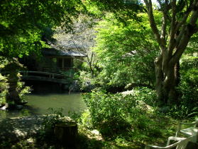 6千坪(ガイドブックによっては7千坪)という敷地には鯉の泳ぐ池の周りに離れが点々としています。1千坪の誤差などどうということのない広さです。