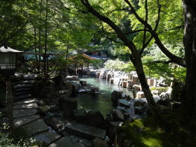 四半世紀ぶりに訪れた宝川温泉。巨大露天風呂を貸切り状態で満喫でき、入浴料1500円は安い! もちろん★5つ。実は20年ほど前、やなぎ妻は学生時代の親友たちと宿泊しています。冬だったので雪と寒さで一番奥の女性専用露天風呂まで行けず、一番手前の「摩訶の湯」に入ったそうですが、酔っ払いおやじたちがうるさかったそうです。ちなみに、楽しみにして行っただけに★は2つだとか。世のおやじたち、くれぐれも注意しましょう。 |