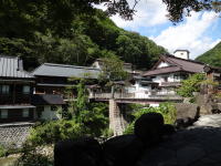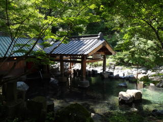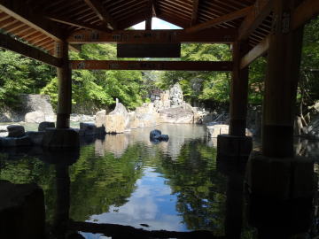川沿いの大露天風呂が有名で、日帰り温泉としても人気の宿だ。 |