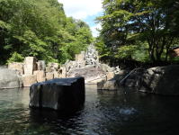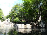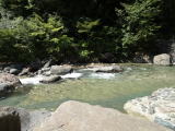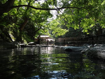 自然林に囲まれ、傍らには渓流の流れ・・・素晴らしい露天風呂です。秋は紅葉がきれいなことでしょう。 |