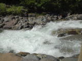 | 休憩所を抜けると前方右手に見えてきたのが混浴の「摩訶の湯」です。 |