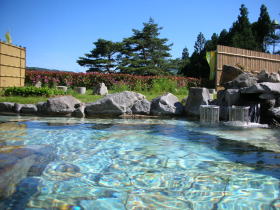 | 露天風呂の源泉は「ロマンの湯」といい、泉質は「メタけい酸含有量が温泉法の限界値を越えているために、温泉法第2条にいう『温泉』に該当しているものと認める」というもの。 |