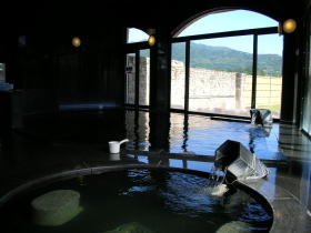 内湯の源泉は「いぶきの湯」というナトリウム・カルシウム-塩化物温泉。 |
