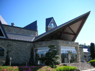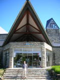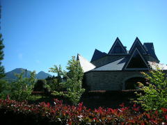 | どことなくシドニーのオペラハウスを思わせるモダンな外観は石造りで、村の観光名所・大理石村ロックハート城を意識してのものでしょうか。田園の中の高台にあるので、城のような印象も受けます。 |