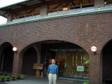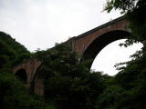 まず目を引くのがレンガ造りのおしゃれな外観。碓氷峠ファン(?)ならすぐにそれとわかるでしょう、旧信越本線の碓氷第三橋梁(通称「めがね橋、左の写真)をモチーフにしています。 |