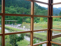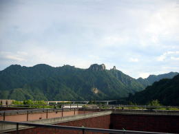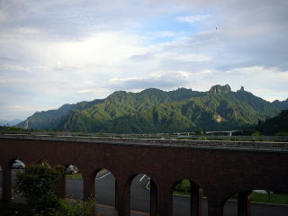 | 右の写真は湯上がり後に休息所のテラスからみた景色です。裏妙義山がとてもきれいでした。 |