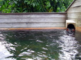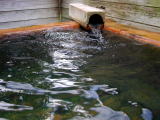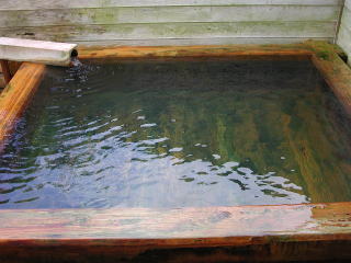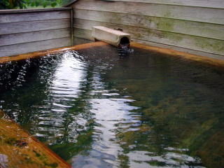 | 露天風呂は源泉そのままのかけ流し。こちらは湯舟からオーバーフローしています。 |