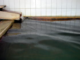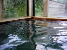 | 内湯は37℃の自家源泉を加熱してかけ流しています。加熱といってもそれほど熱くはありません。湯舟の中で腰掛けられるようになっているので長湯を楽しめます。 |