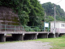 右の写真は宿の駐車場なのか、駅の駐車場なのかよくわからない駐車スペース(たぶん宿のもの)から見た駅のホームです。 |