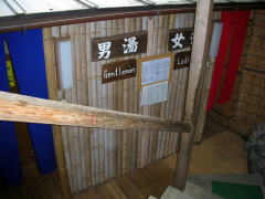 露天風呂に行くには館内を通り抜けて一旦外に出、左の写真の入口から露天風呂通路を通っていきます。 |