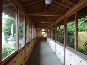 フロントで入浴料金を払い、「大観の湯」へ。浴場へは長い渡り廊下を渡っていきます。 |