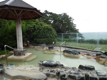 | 二つの湯舟からは太平洋を間近に見下ろすことができ、浸かっては潮風に当たり、また浸かっては潮風に当たり・・・いつまでもいたい、そんな露天風呂です。 |