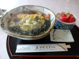 昼食付日帰り入浴などのコースもあり、日帰り入浴客も歓迎してくれる温泉ホテルです。ただし、それだけに昼食時はかなり混雑するのではないでしょうか。私が訪れたのは平日の午後3時。上の写真でおわかりのように貸切り状態で心の中でガッツポーズしました(笑)。 左の写真は併設レストランで食べた「天麩羅そばセット」(1,350円)。美味しかったです。 |