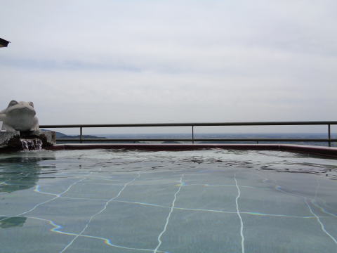 | パノラマ露天風呂「雲上の湯」。女性用は内湯と露天風呂が同じ浴場にありますが、男性用は少し離れていて着替え直さなければならないのがちょっと面倒ではあります。 |