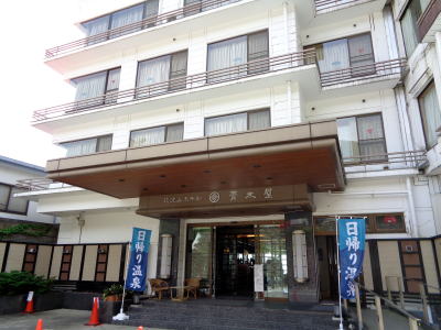 | ホテル青木屋は筑波山神社の大鳥居の近くにあります。日帰り入浴時間は12時から15時まで。団体の場合は予約が必要です。15分程早かったのですが、清掃が済んでいたので快く受付けてくれました。 |