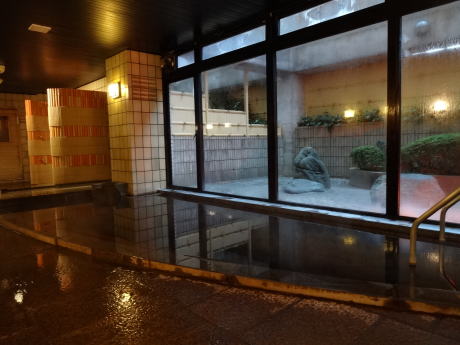 | さほど広い浴場ではありませんが、全室バス付きのホテルなので混み合うことはありませんでした。女性浴場は円形の浴槽でもう少し広いようです。 |