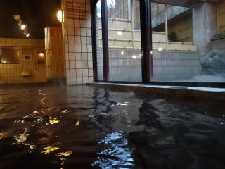 | 利用時間は午前5時から10時半、午後は2時から0時まで。市内観光で疲れた体を癒してくれるいい湯です。金沢の街中でこんな湯を味わえるとは思いませんでした。 |