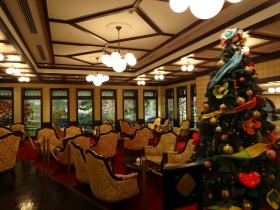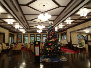訪れたのは12月25日。ロビーには加賀友禅のオーナメントをデコレーションしたクリスマスツリーが飾られていました。 |