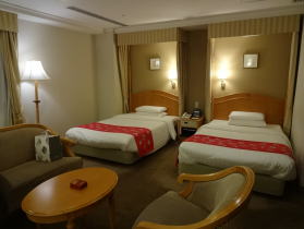 | 今回の部屋はデラックスツイン。窓からは金沢城公園が見えます。 |