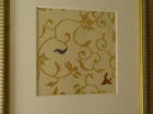 | ベッド頭上に飾られているのは「正絹中金竹屋町唐草」といって、金箔を裂いて正絹に縫い込んだものだそうです。 |