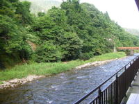 部屋の窓の外は涼しげな豊沢川の流れ。1階でもあり、川音がさぞや大きいのではと思いましたが、冬の寒さ対策で二重窓になっているのでほとんど聞こえず、ぐっすり眠れました。 |