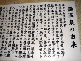 | 宮沢賢治は館主の遠縁にあたりよく宿を訪れたそうで、童話『なめとこ山の熊』の中に「とにかくなめとこ山の熊の胆は名高いものになっている。腹の痛いのにも利けば傷もなおる。鉛の湯の入口になめとこ山の熊の胆ありという昔からの看板もかかっている」と鉛温泉のことが触れられています。 |
