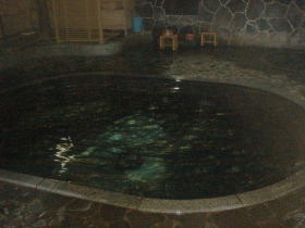 無色透明のすべすべした肌ざわりの湯は、上がってからそのすごさがわかります。湯冷めしないを通り越して汗がなかなか引きませんでした。 |