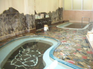 | 「薬師の湯」は自炊部の大浴場です。5〜6人ほど入れる湯舟が2つ。レトロな雰囲気の浴場です。 |