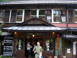 今回は鉛温泉藤三旅館を10時にチェックアウトしたあとの立ち寄り湯でした。私たちがひと風呂浴びて売店でコーヒー牛乳を飲んでいると(よく温まる湯でなかなか汗が引きません)、日帰り入浴をしに来た人たちが次々と受付けをしていました。お目当てはやはり「大沢の湯」でしょうか。徐々に気温が上がってきたのでアブの動きも活発になってくるでしょう。刺されなければいいのですが。妻はアブが怖くて結局「大沢の湯」にも「かわべの湯」にも入れず、大沢温泉を満喫することができませんでした。アブがいない季節、特に秋、紅葉を眺めながら入るのが一番なのでしょう。 |