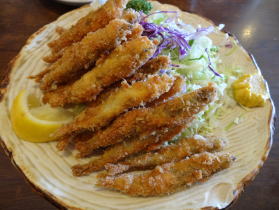 | そして仕上げは成川美術館近くの深生(しんしょう)そばで遅いランチ。そばもさることながら、ワカサギのフライがまた美味かった。なんでも、芦ノ湖には元々ワカサギはおらず、大正7年に霞ヶ浦のワカサギを放流したのが始まりだとか。今では毎年、10月1日の刺網漁解禁日に宮内庁に献上されているそうです。 |