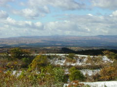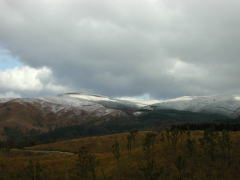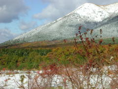 前の夜、かなりの雪が降った模様で、秋と冬が入り混じった景色。
