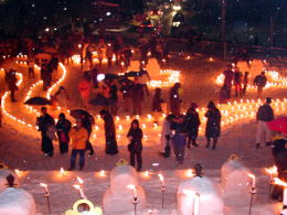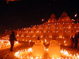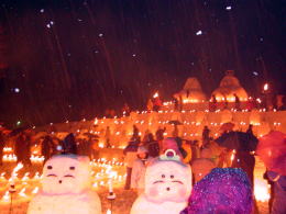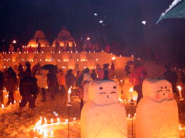 西の河原駐車場前の特設会場に巨大な雪のひな壇が出現。